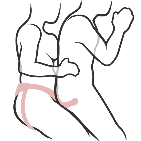In this position, the bottom sits on the strap-on, giving the bottom full control of depth and speed.