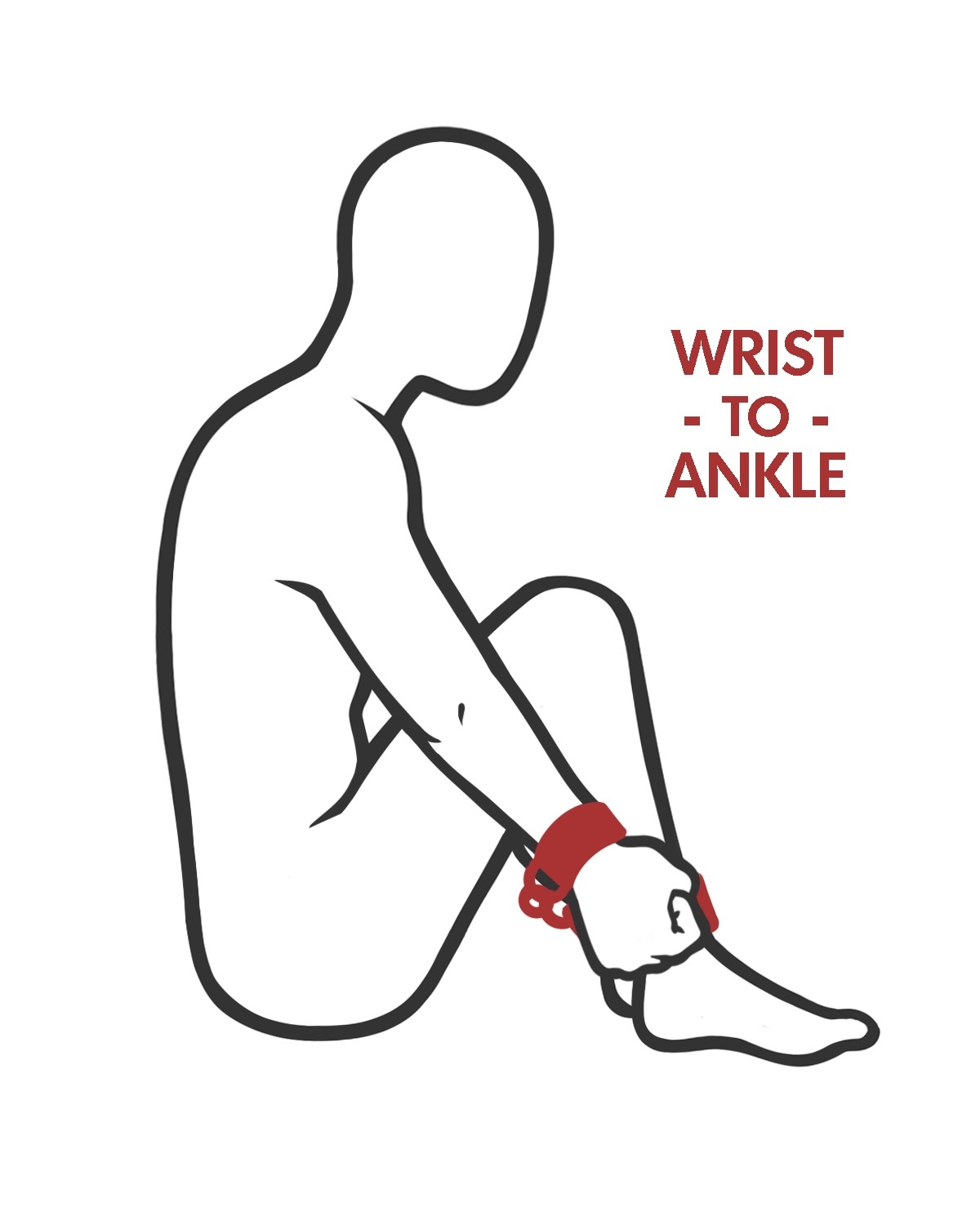Just like the name suggests, the classic wrist-to-ankle tie immobilizes a submissive by bounding their wrists closely to the ankles. Wrists can be restrained in front or behind the ankles. Some prefer to use wrist and ankle cuffs with a connector while others use rope.