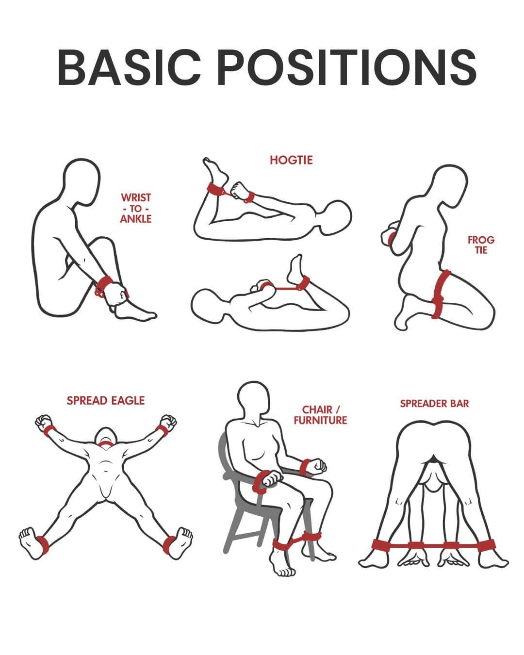 These positions are great for beginners to bondage and BDSM restraints, but they’re a staple for anyone regardless of experience! I mean, who doesn’t love the classic hogtie? Keep reading for our favorite essential positions.