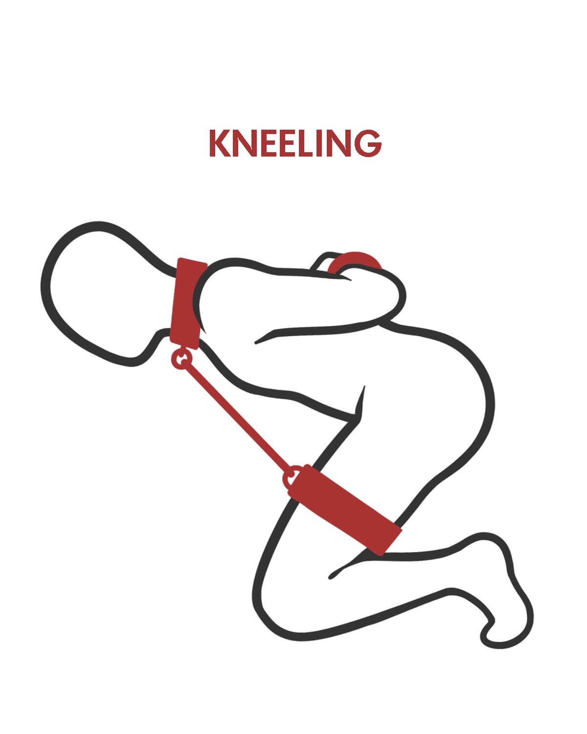 The kneeling or presenting position is an honorific BDSM position that expresses complete submission to a Dominant. Typically, the submissive’s thighs are bound together and arms restrained behind their back while wearing a collar that is clipped to their thigh cuffs with a chain connector, forcing them to their knees with their back elongated, head forward, and body angled toward the ground. Just as the name suggests, this position keeps the submissive in a perpetual state of presentation to their Dominant. There’s plenty of ways you can go from this position. The sub is within perfect reach for worshipping the ground their Dom stands on or their shoes/feet. Or, if the submissive is in need of a strong reminder of their place in the dynamic, their rear is elevated just right for a good spanking.