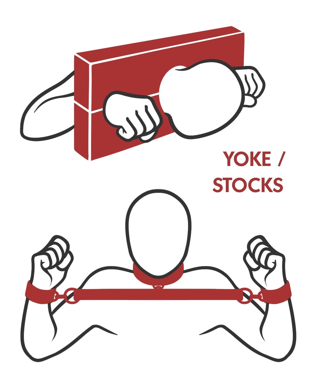 You probably recognize this one! Maybe you’ve seen helpless prisoners locked up in a yoke or stock restraint awaiting their punishment in a movie or show set in medieval times. Also known as the secretary or stockade restraint, yokes and stocks render the submissive useless and exposed. These restraints are commonly made of stainless steel or wood and force the hands/wrists upright in line with the neck. Some restraints keep the arms raised at shoulder height and the neck straightened while others are set on a stand, forcing the wearer to bend over. This position takes time to work your way up to this one as it requires some flexibility and can be uncomfortable – true pain sluts will appreciate this one.