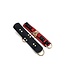 These elegant ankle cuffs pair high quality red and black vegan leather and gold tone hardware for bondage gear that is as beautiful as it is functional. The unique closure mechanism hides in plain sight while being adjustable. Pairs beautifully with the rest of the Bond Girl line.