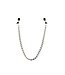 Nipple clamps with broad tips. These are great for large nipples that need a wider tip. The wide, rubber-tipped tips distribute the pressure from the clamp. Link chain.