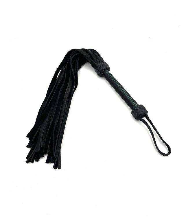 The Black Buffalo Flogger is crafted for players who appreciate deep, body-focused thuddy impact. Made from thick, supple buffalo hide, this flogger produces powerful strikes with very little sting.