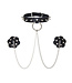 Complete with matching pasties, this black spiked collar is perfect for performances, fetish wear, and kinky play time. The back buckle allows for adjustability and a comfortable fit. The collar includes a large o-ring perfect for leashes and bondage.