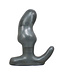 The external part of this plug is narrow and long to tuck between the cheeks. The longer end curves upright and forward to hug the curve of the body between the legs so that when walking the motion generated causes the plug inside to move slightly. This quality will be more pronounced in the Firmer Black silicone, but is still only intended to be subtle. Turn the plug 180 degrees for much less motion and less focus on the prostate. The Charlie Horse base works like a handle too.