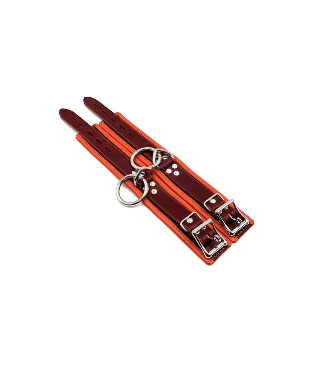 Deluxe Two-Tone Locking Wrist Lock, a versatile and stylish accessory meticulously crafted with premium leather. These cuffs symbolizes strength and durability in the realm of bondage gear, perfect for extreme scenes and enhancing your unique lifestyle. The adjustable O-ring closure is ideal for petite ankles, adding both security and style.