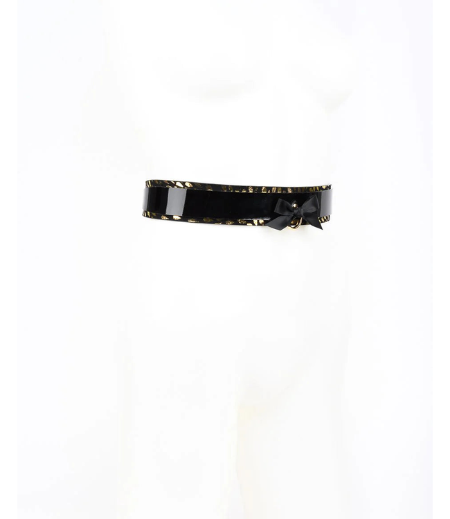 The Deluxe Belt is designed for maximum versatility. Its rich textures, gold accents, and satin bow create a flattering silhouette that works beautifully as a fashion belt or a statement fetish piece.