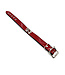 This collar may be simple but it's anything but boring. Unique double hardware on the front supports a functional D-ring attachment point, with matching grommets and buckle hardware to strap the wearer in. Soft black garment leather lines the inside.