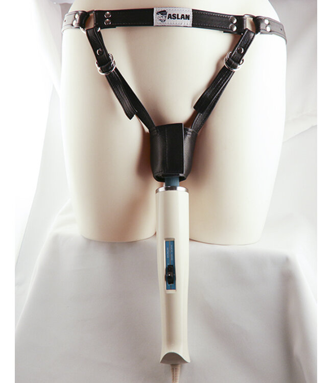 Crafted from soft, resilient jag leather, the harness feels smooth against the skin and naturally molds to the body for a glove-like fit. The adjustable wand holder features a secure Velcro closure, ensuring the massager stays firmly in place even during intense play.
