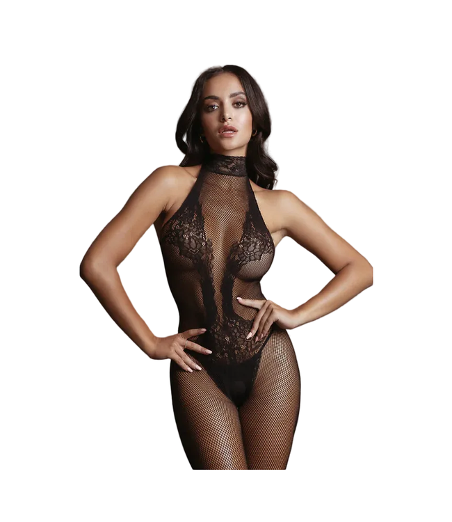 Step into effortless seduction with the Le Désir Fishnet & Lace High-Neck Bodystocking, a striking fusion of elegance and edge. This captivating piece blends intricate lace patterns with daring fishnet detailing to create a visually stunning, curve-enhancing silhouette.