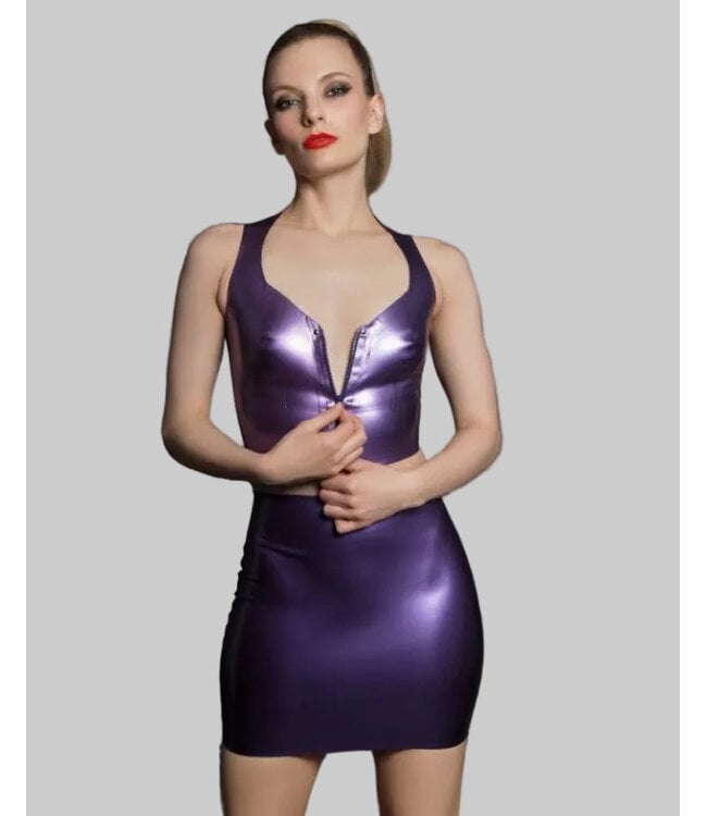 Introducing a vibrant new addition to the #PeterDomenieOriginal collection: the Metallic Purple Latex Cropped Top. Crafted from stunning metallic lilac latex, this eye-catching piece radiates confidence, playfulness, and bold fetish fashion energy.