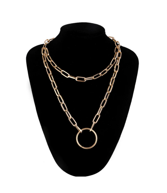 This sub necklace features a large, gold o-ring and layered chain that can be worn in public so you and your submissive can keep a dirty secret right under everyone's noses. When a sub wears this necklace, they won't forget what it means: "I belong to you