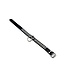 A sturdy collar for those wanting some sparkle in their dungeon. Sturdy latigo leather covered in rows of aurora borealis rhinestone rivets makes up the body of the collar, while steel hardware makes up a dangling o-ring and soft leather.