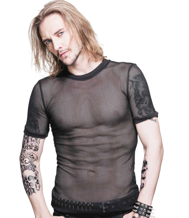Embrace raw, unapologetic style with this men’s punk fishnet t-shirt—a statement piece built for those who live loud and dress even louder. With its sheer mesh construction and body-hugging fit, this top puts your physique on full display while channeling rebellious punk energy.