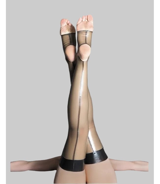 Add a striking finishing touch to your latex outfit with these semi transparent black latex stockings. Designed to enhance the natural shape of the legs, they deliver the unmistakable shine and sleek look that latex fashion lovers adore.