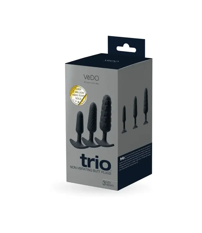 The VeDO Trio Anal Plug Set is designed to support every stage of anal exploration, offering three differently sized, weighted, and textured plugs in one sleek black collection. Whether you’re just beginning your journey or expanding your experience, this set provides a smooth progression with thoughtfully engineered shapes.